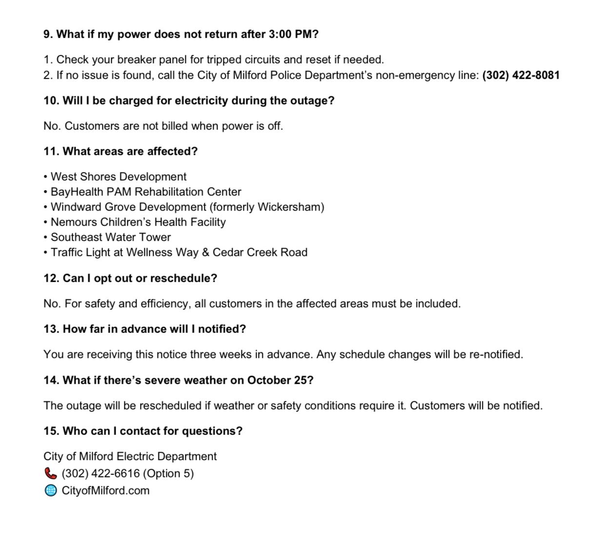 Please note, all customers that will be affected will receive a notification letter along with the FAQ sheet.