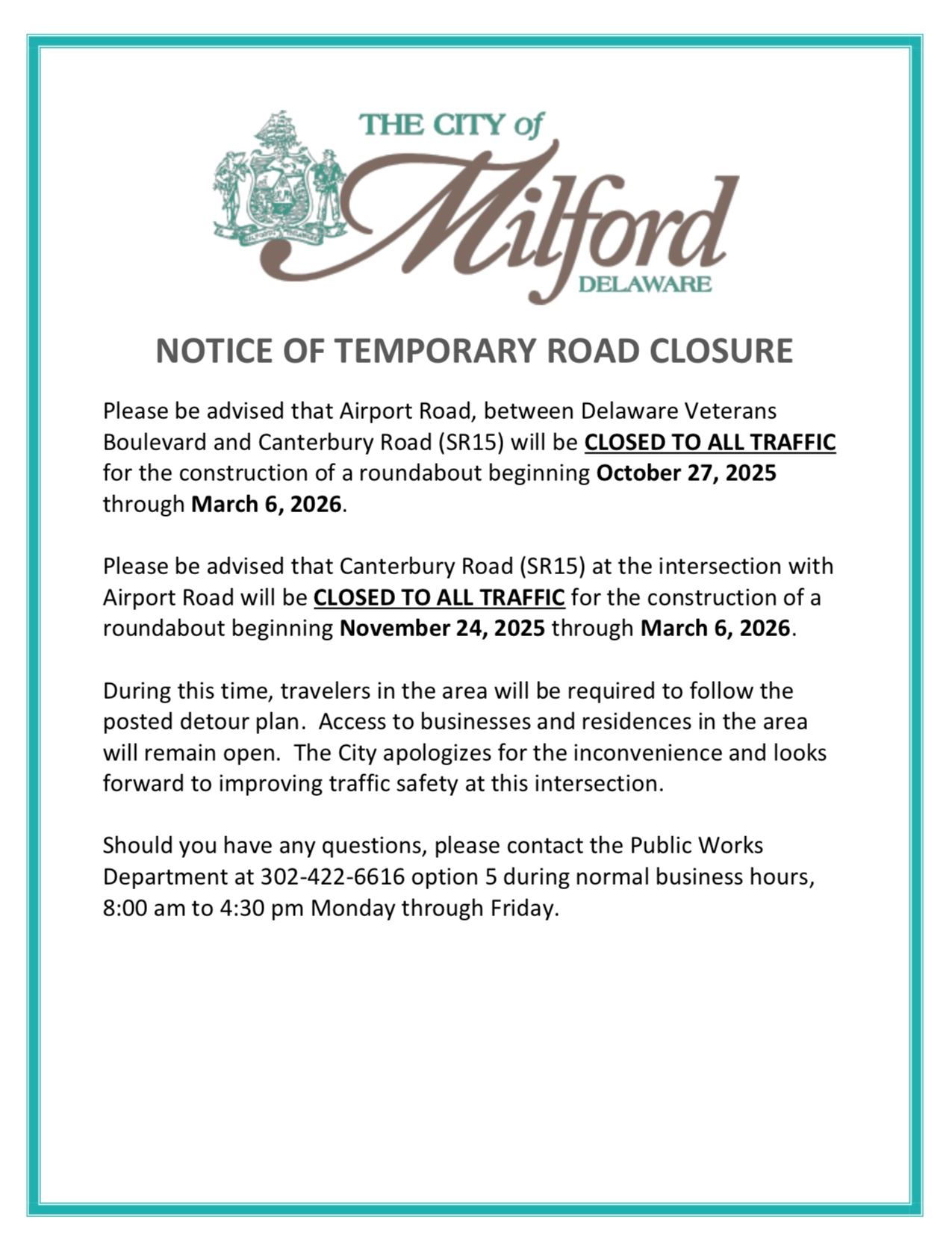 [ARCHIVED] Notice of Temporary Road Closure - Airport Road